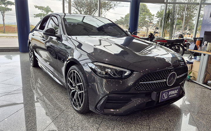 Marca: Mercedes benz Modelo: C300 AMG Line Motor: 2.0T Ano: 2023 Km: 14700 Cor: Cinza Opcionais: Completo Transmissão: Automático Combustível: Gasolina
